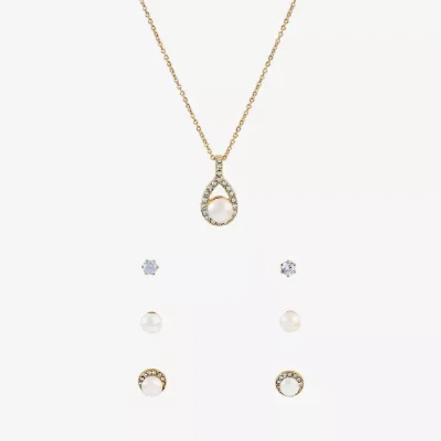 Sparkle Allure Womens Cubic Zirconia Simulated Pearl 14K Gold Over Brass 2-pc. Jewelry Set