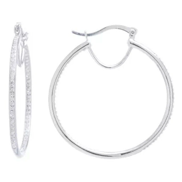 Sparkle Allure Pure Silver Over Brass Crystal Hoop Earrings