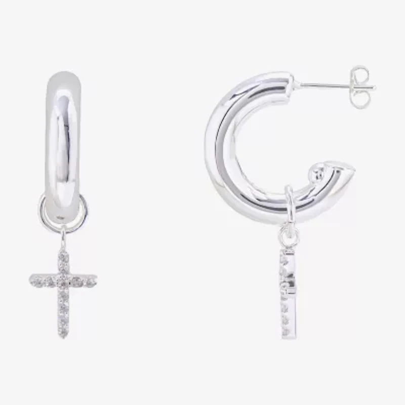 Sparkle Allure Womens Crystal 17.9mm Cross Hoop Earrings