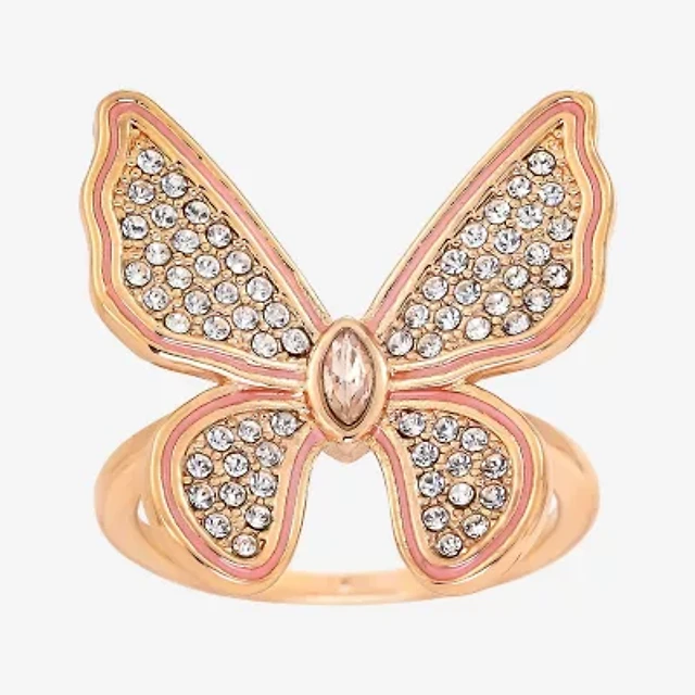Sparkle Allure Womens Crystal 18K Rose Gold Over Brass Butterfly Cocktail Ring