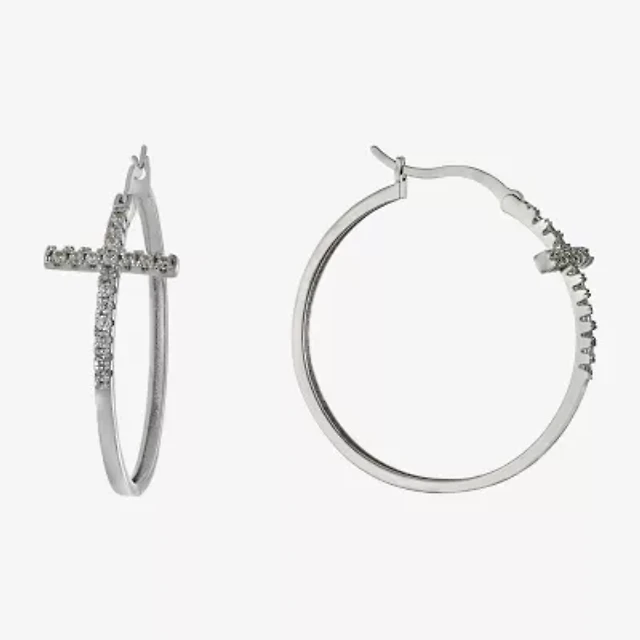Sparkle Allure Womens Crystal 42.2mm Cross Hoop Earrings
