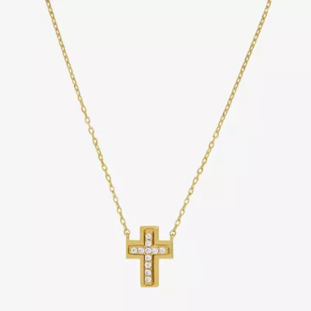 Sparkle Allure Womens Cubic Zirconia 14K Gold Over Brass Cross 16 Inch Pendant Necklace