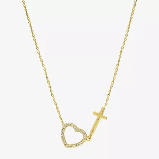 Sparkle Allure Womens Cubic Zirconia 14K Gold Over Brass Cross Heart 16 Inch Pendant Necklace