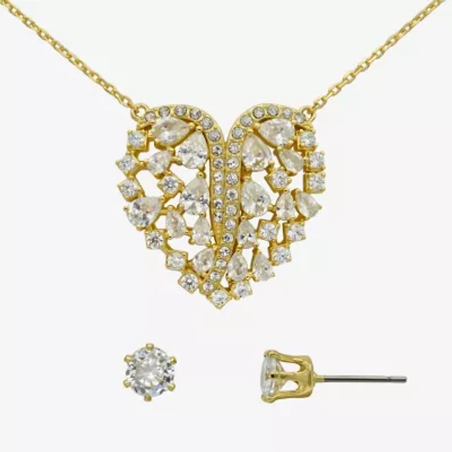 Sparkle Allure Womens Cubic Zirconia 14K Gold Over Brass Heart 2-pc. Jewelry Set