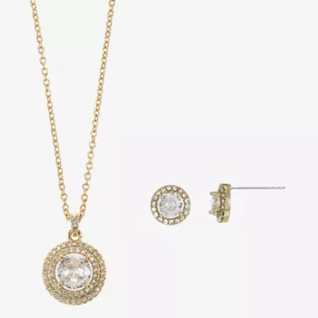 Sparkle Allure Womens Cubic Zirconia 14K Gold Over Brass Round 2-pc. Jewelry Set