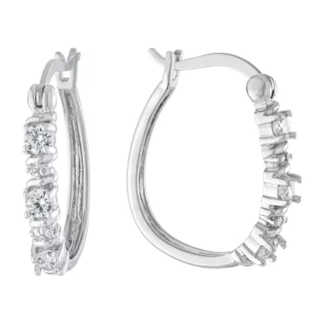 Sparkle Allure Cubic Zirconia Pure Silver Over Brass 11mm Hoop Earrings