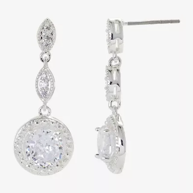 Sparkle Allure Womens Cubic Zirconia Pure Silver Over Brass Round Drop Earrings