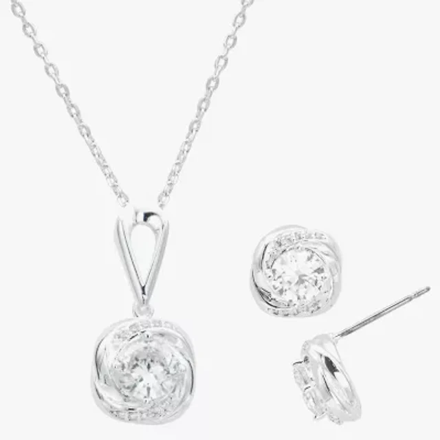 Sparkle Allure Womens Cubic Zirconia Pure Silver Over Brass Knot 2-pc. Jewelry Set