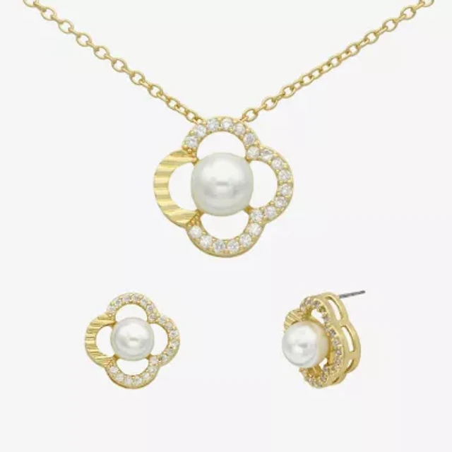 Sparkle Allure Womens Cubic Zirconia Simulated Pearl 14K Gold Over Brass 2-pc. Jewelry Set