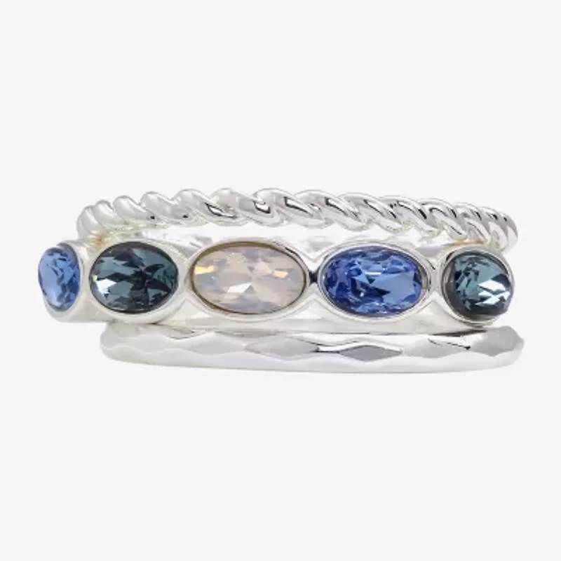 Sparkle Allure Womens Multi Color Crystal Pure Silver Over Brass Oval Delicate Ring SetSparkle Allure Womens Multi Color Crystal Pure Silver Over Brass Oval Delicate Ring Set