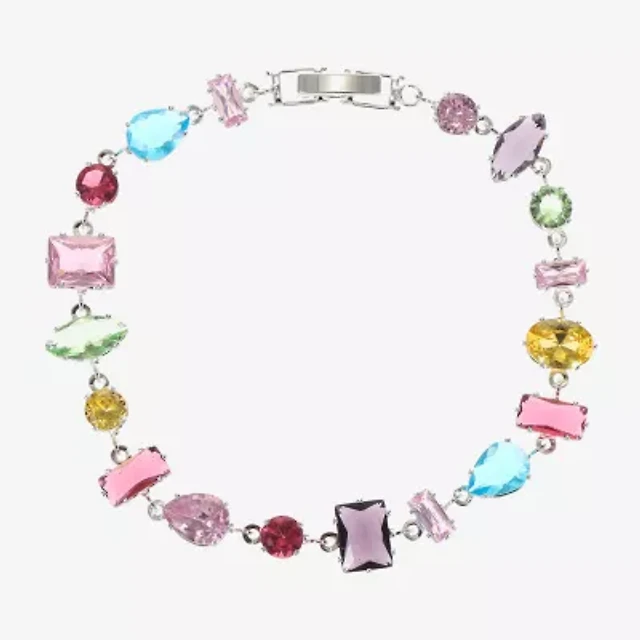 Sparkle Allure Womens Multi Color Cubic Zirconia Pure Silver Over Brass Oval Pear Round 7.5 Inch Tennis Bracelet
