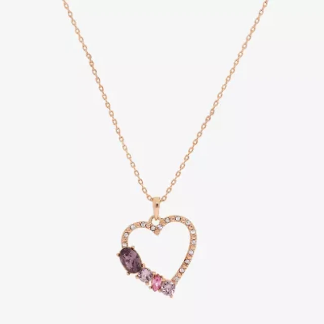 Sparkle Allure Womens Pink Crystal 18K Rose Gold Over Brass Heart 16 Inch Pendant Necklace
