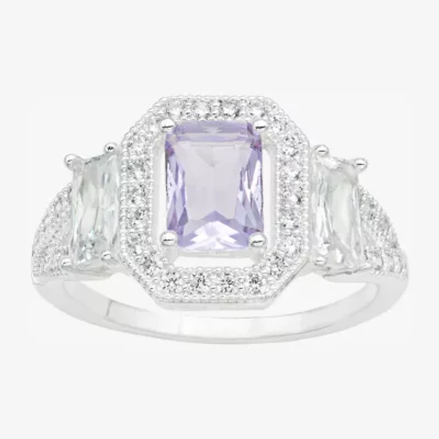 Sparkle Allure Womens Purple Cubic Zirconia Pure Silver Over Brass Halo Cocktail Ring