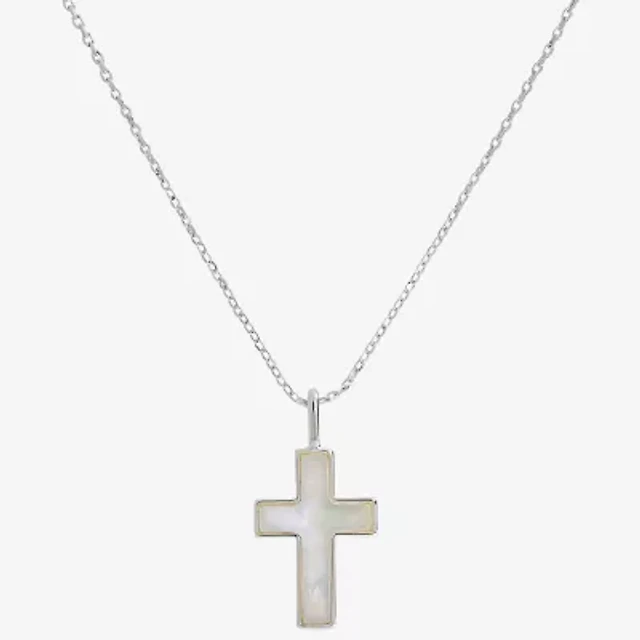 Sparkle Allure Womens White Mother Of Pearl Pure Silver Over Brass Cross 16 Inch Pendant Necklace