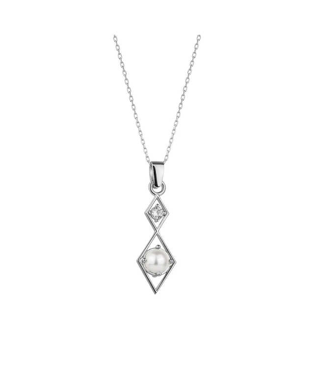 Spero London Sterling Silver Rhombus 3D Pearl Necklace