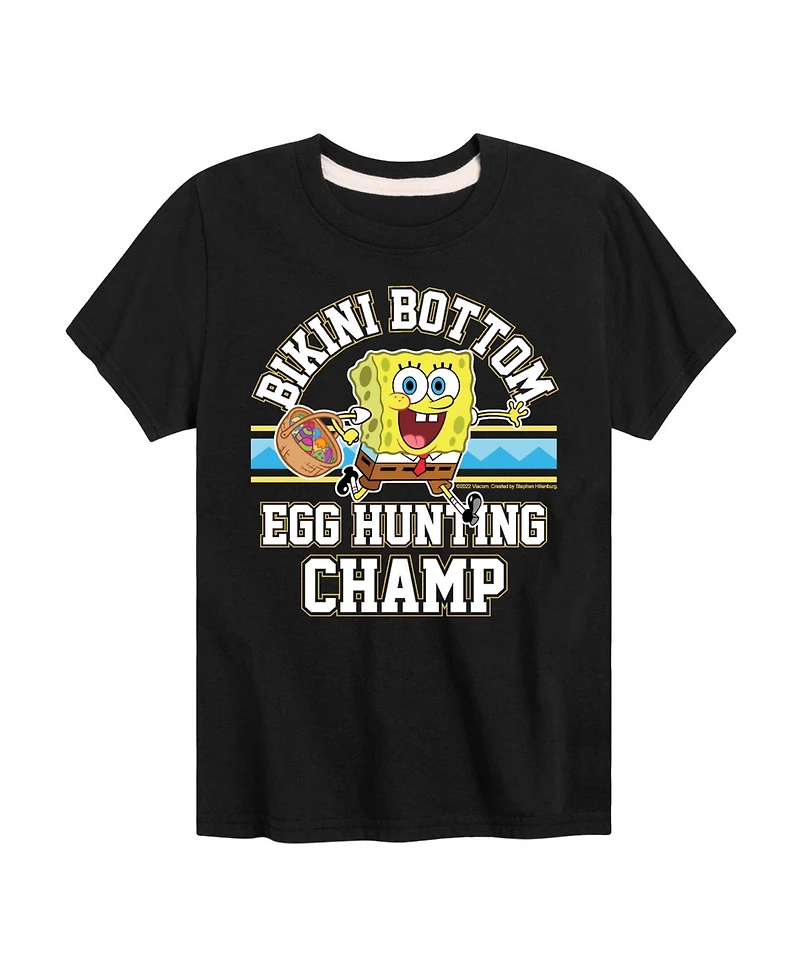 SpongeBob SquarePants Boys' 8-20 Bikini Bottom Egg Hunting Champ Short-Sleeve Graphic T-Shirt