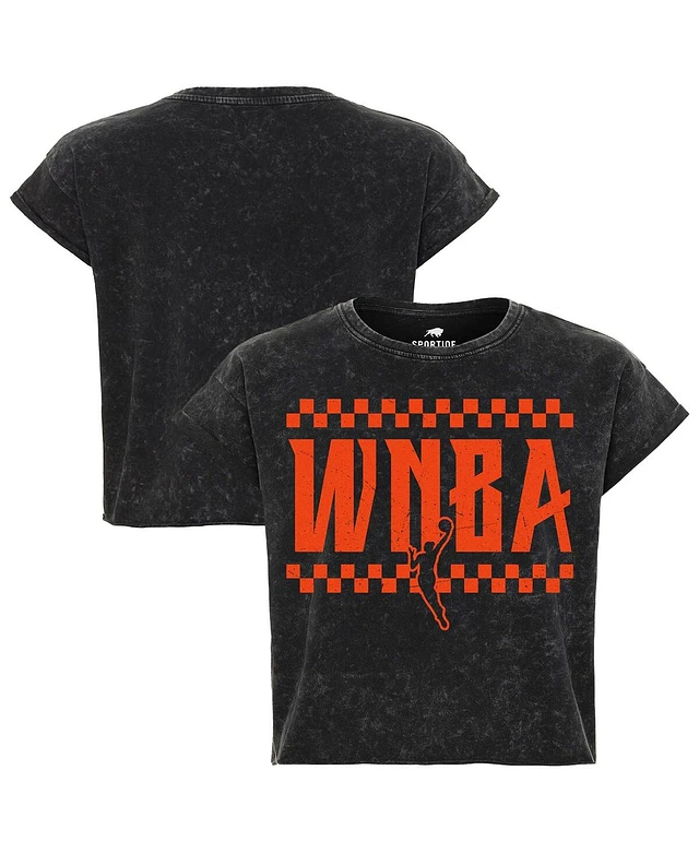 Sportiqe Men's and Women's Black Wnba Rock Roll Collection Gwen Mineral Wash Cropped T-Shirt