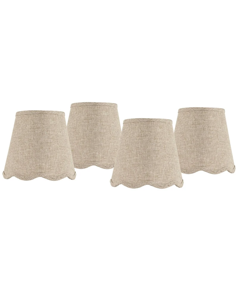 Springcrest 4" Top x 6" Bottom x 5 1/2" High x 5 1/2" Slant Lamp Shade Replacement Set of Fawn Scalloped Clip On Candelabra