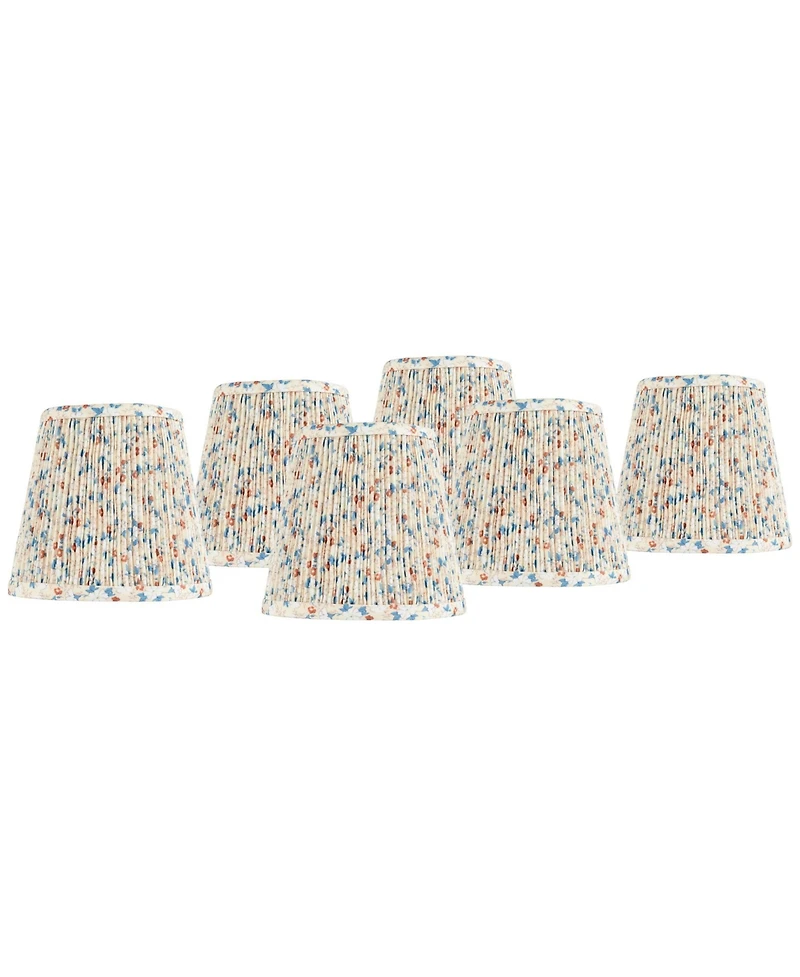 Springcrest 4" Top x 6" Bottom x 5 1/2" High x 5 1/2" Slant Print Lamp Shade Replacement Set of 6 Leaf Pleated Clip On