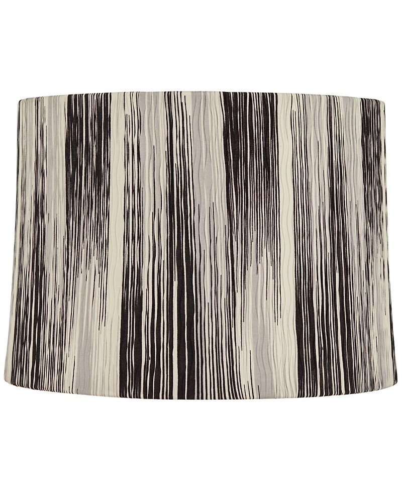 Top off table lamps with this softback drum shade, featuring a rolled edge trim and subtle tapered top for an elegant touch. A black stripe pattern polyester fabric surrounds the shade, offering a sleek modern vibe and mesmerizing sophistication. The polished brass finish spider fitter secures to lamp easily. From the Springcrest brand of designer lamp shades.