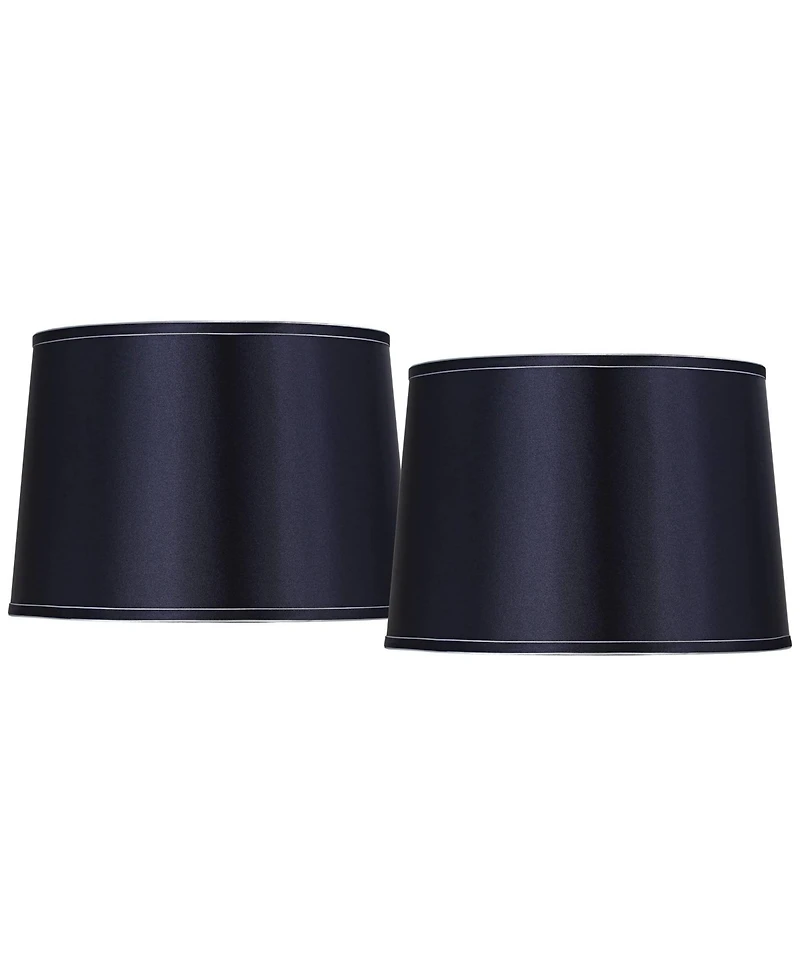 Elevate the look of existing lamps with this chic set of two dark navy drum lamp shades. Silver piping trim lines the top and bottom for an elegant touch and each is lined in silver. The set includes chrome finish spider fitters. From Springcrest Collection, the correctly sized harp and a finial are included free with each shade.
