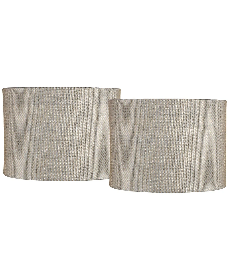 Enjoy generous versatility that complements lamps made from a variety of materials, choosing this set of two hardback drum lamp shades from Springcrest Collection. Plastic material offers a high-quality build to each shade, which boasts a texturized gray and gold weave pattern surface. Perfect for metal or ceramic lamps, these shades offers a white unlined interior and neatly rolled trim edges.