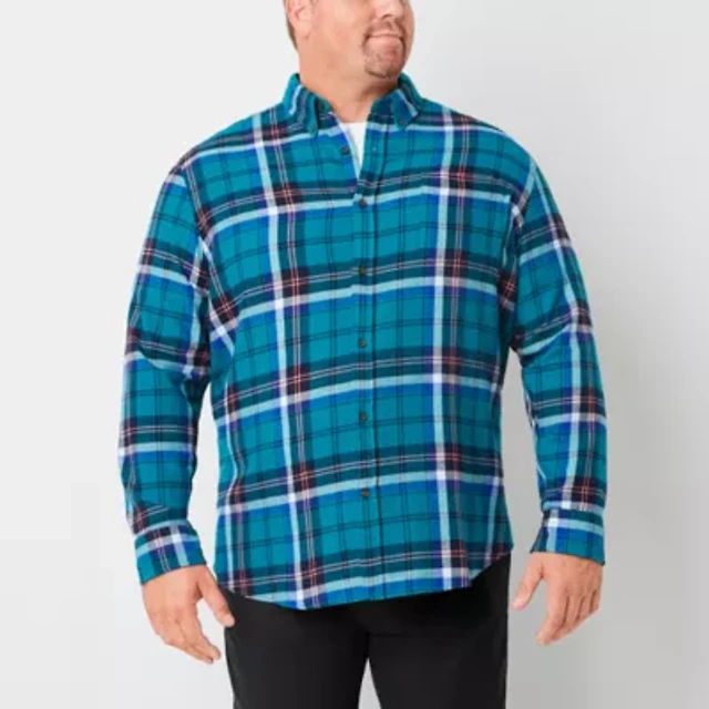 St. John's Bay Big and Tall Mens Classic Fit Long Sleeve Plaid Button-Down Flannel Shirt