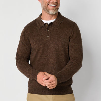 St. John's Bay Fine Gauge Polo Mens Long Sleeve Pullover Sweater