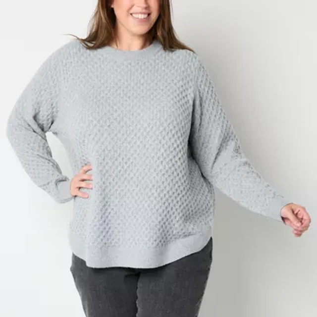 St. John's Bay Plus Womens Crew Neck Long Sleeve Pullover Sweater