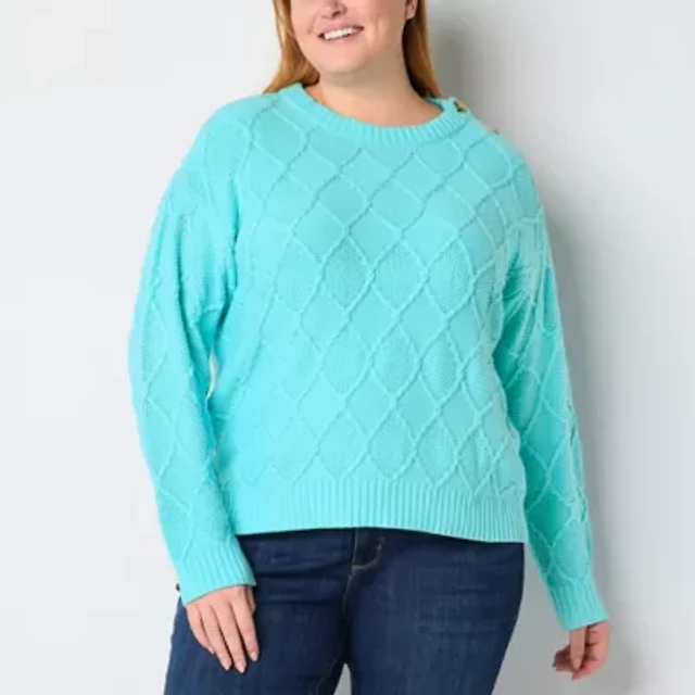St. John's Bay Plus Womens Crew Neck Long Sleeve Cable Knit Pullover Sweater