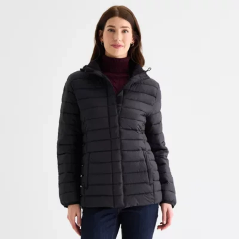 St. John's Bay Womens Adaptive Hooded Easy-on + Easy-off Midweight Puffer Jacket
