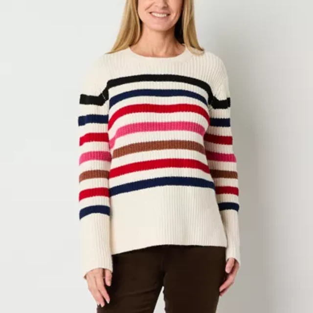 St. John's Bay Womens Crew Neck Long Sleeve Striped Pullover Sweater