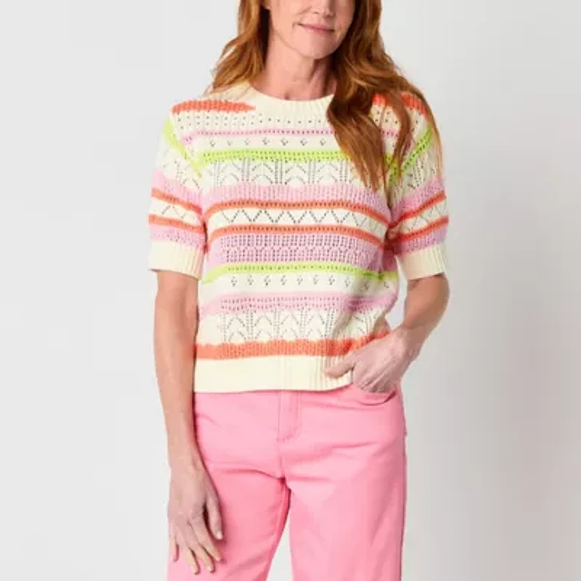 St. John's Bay Womens Crew Neck Short Sleeve Pullover Sweater