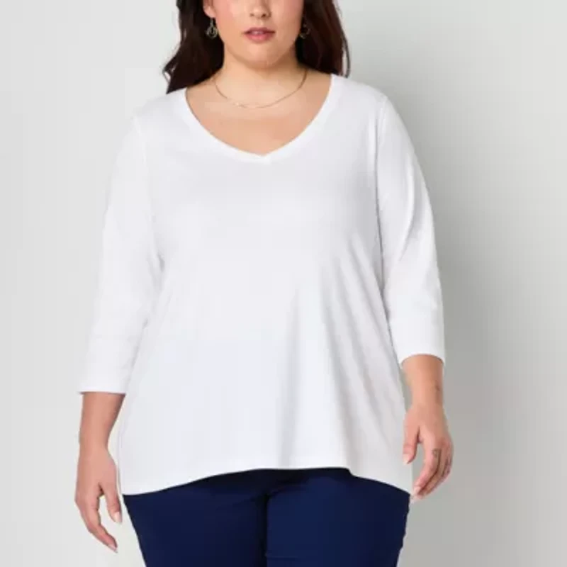 St. John's Bay Womens Plus Easy-on + Easy-off V Neck 3/4 Sleeve Adaptive T-Shirt