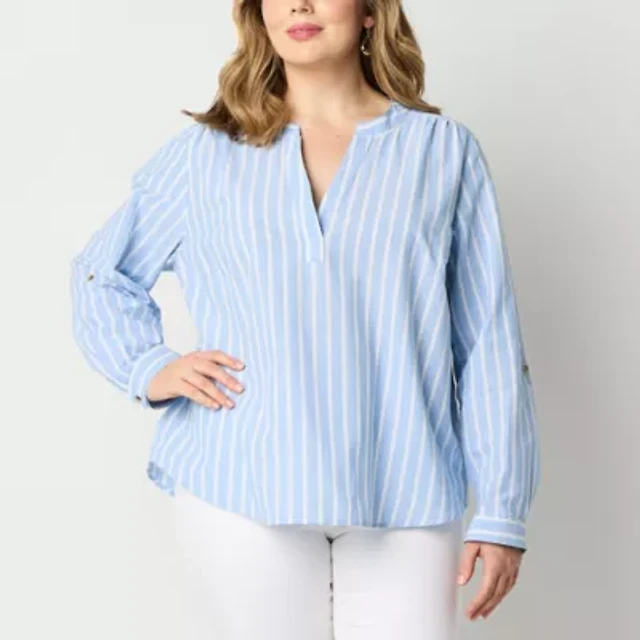 St. John's Bay Womens Plus Split Crew Neck Long Sleeve Blouse