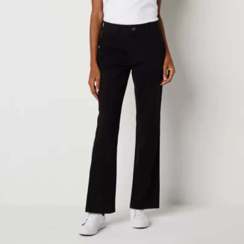 Your day is full of choices- so make one less by choosing this pair of St. John's Bay girlfriend chino pants that's both a business and casual style. Cut for a straight-leg with flat-front tailoring from stretch-cotton twill for a comfortable all-day feel; this everyday chino also features a button-zip closure and side slant and back welt pockets for a complete tailored look. The unrolled inseam is 2" longer.