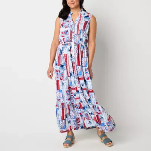 St. John's Bay Womens Sleeveless Floral Midi Swing Dresses