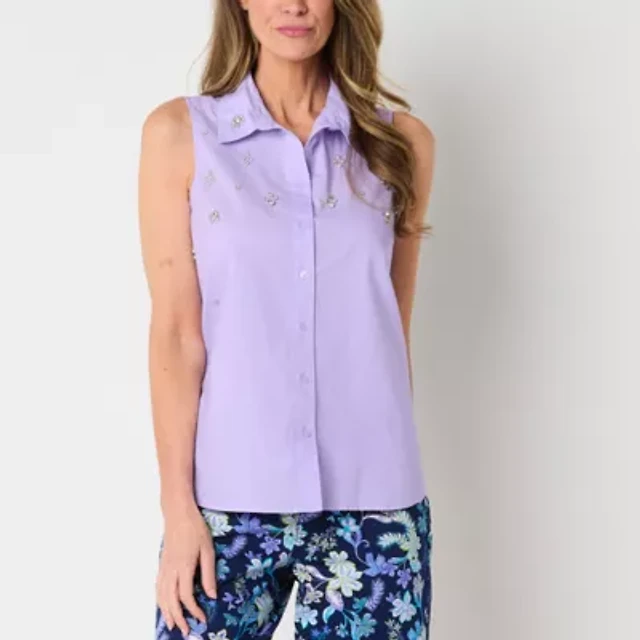 St. John's Bay Womens Sleeveless Embellished Blouse
