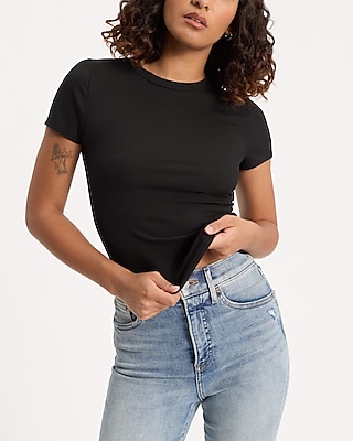 Fitted Ribbed Crew Neck Short Sleeve Tee