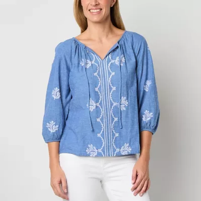 St. John's Bay Womens Tall Split Tie Neck Long Sleeve Blouse