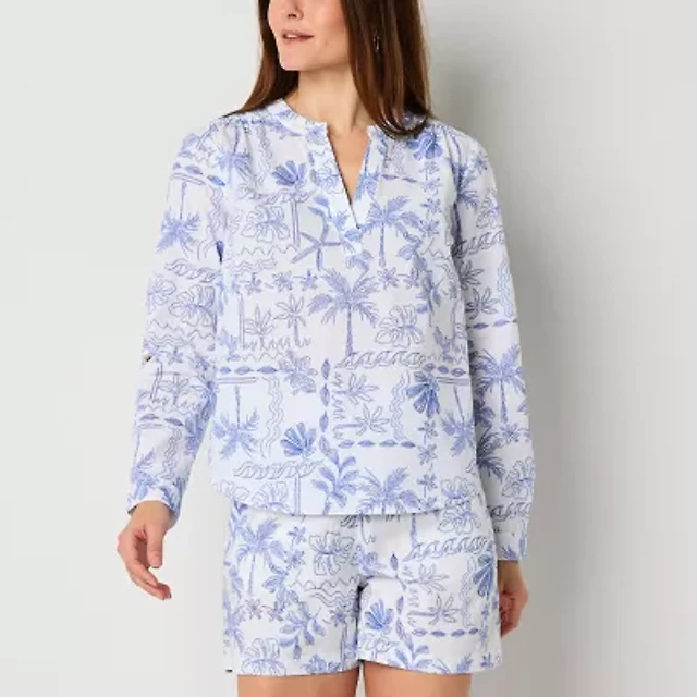 St. John's Bay Womens Round Neck Long Sleeve Blouse