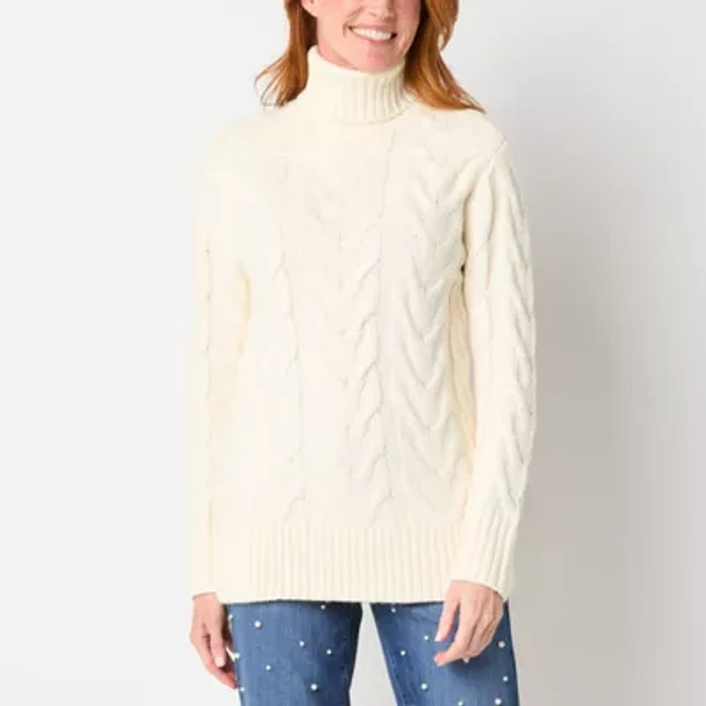 St. John's Bay Womens Turtleneck Long Sleeve Cable Knit Pullover Sweater
