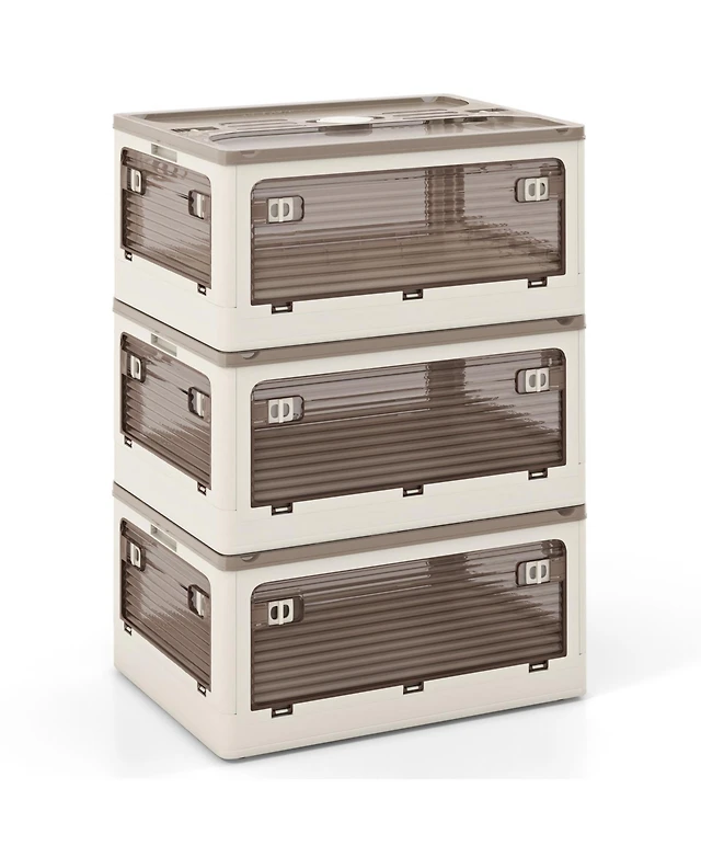 3-Piece Stackable Organizer Bins with Lids – Easy Access Storage with 5 Opening Styles for Home or Office
