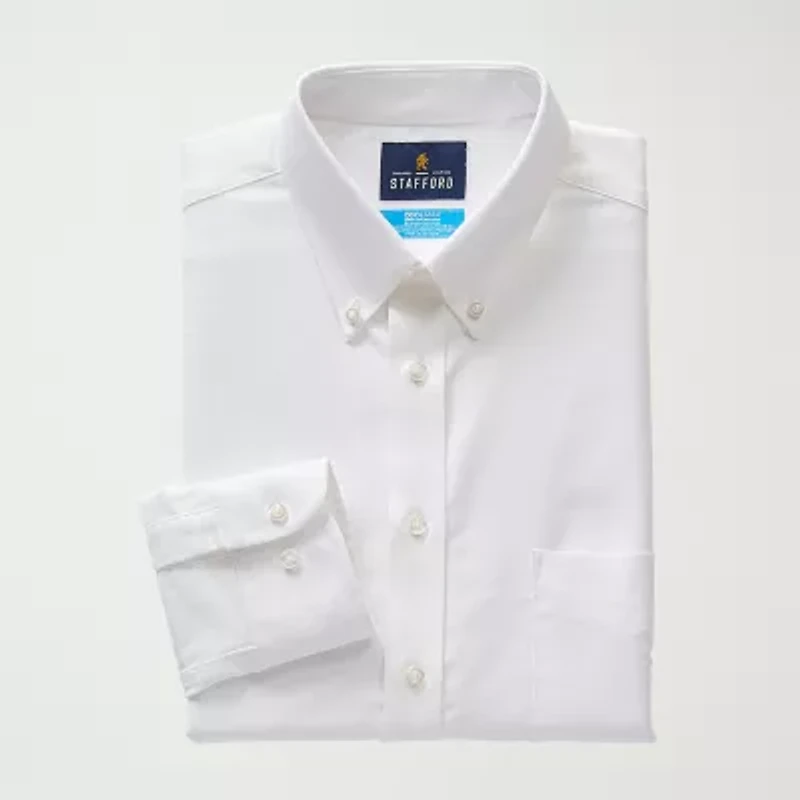 Deemed a Gotta-Have-It item for value you can count on every day! Style and performance meet in this Stafford Coolmax men's dress shirt. This long-sleeve button-down is cut for a regular-fit from wrinkle-free stretch-cotton and features moisture-wicking properties to keep you cool and confident all day. Team it with a pair of suit pants.