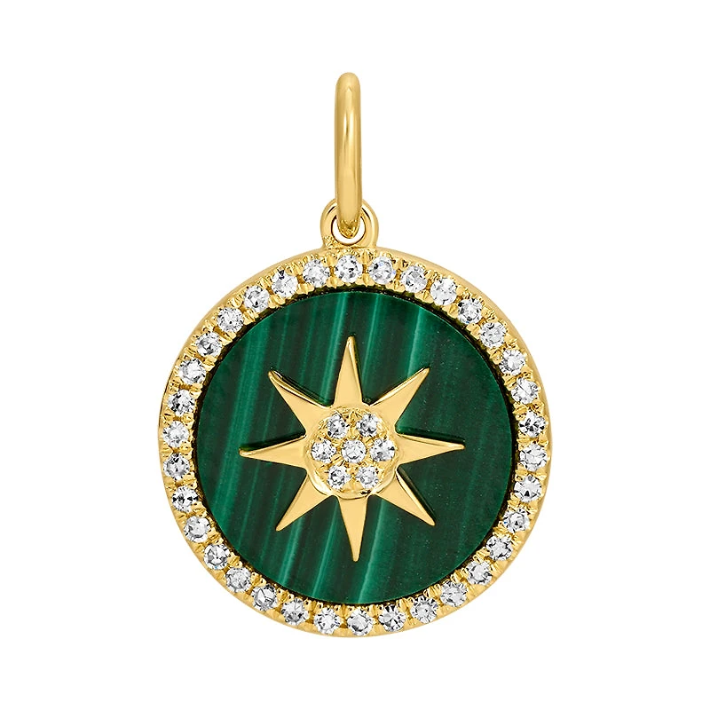 Star Malachite and Diamonds Disk Pendant in San Juan, PR
