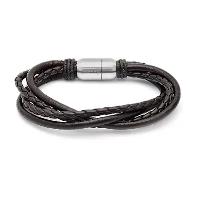 Steeltime Braided Leather Mens Stainless Steel Wrap Bracelet