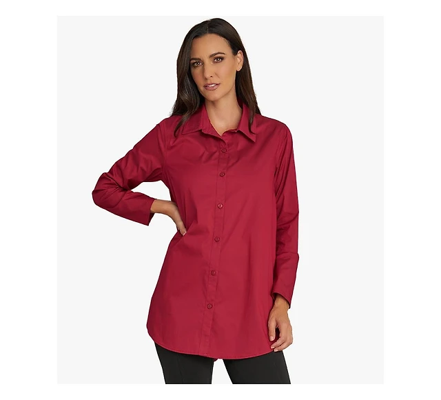 Stella Carakasi Women's Cotton Poplin Button-Front A-Line Shirt Top Prime Time Tunic