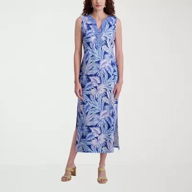 Stella Parker Womens Sleeveless Leaf Maxi Dress
