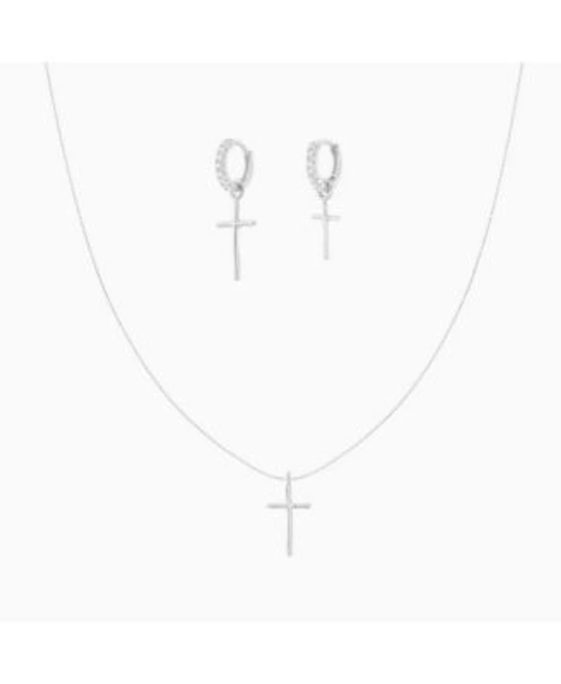 Sterling Silver 18k Gold Plated Ariel Cross Necklace Mismatching Cross Earrings Set