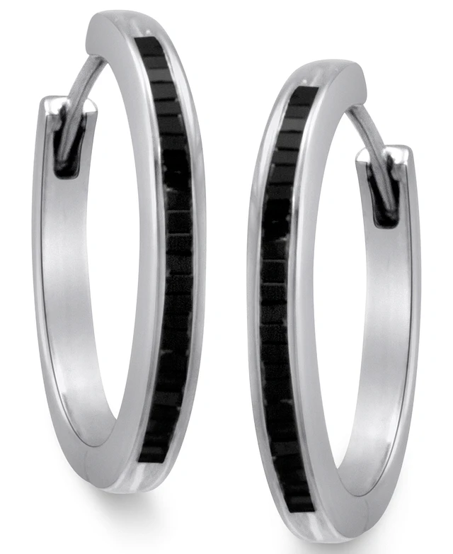 Sterling Silver Earrings, Black Diamond Baguette Hoop Earrings (1 ct. t.w.)